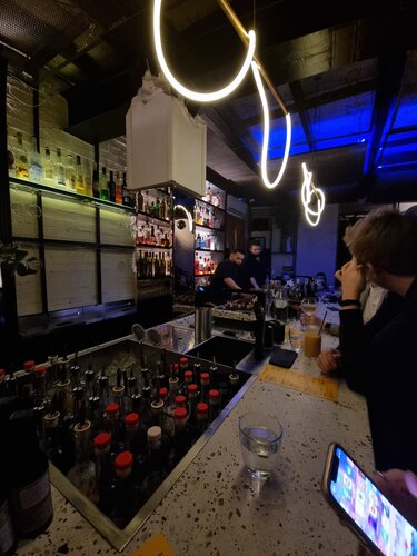 Лучший коктейльный бар! Бармены справляются с работой на ура, очень чётко понимают, чего ты хочешь и почти всегда угадывают с предложенным напитками. Атмосфера 10/10: и выслушают, и нальют, и в себя прийти помогут, короче максимально понимающие ребята, с которыми приятно разговаривать. Всем советую, заходите, абсолютно точно не пожалеете (главное - чётко обозначить свои интересы)